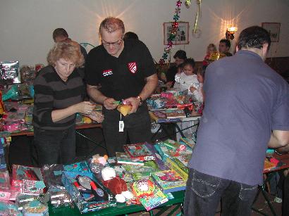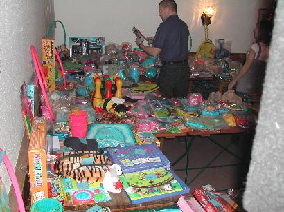 den "Naschereien" links unten: Obmann Paller kurz vor der Riesentombola-Verlosung |