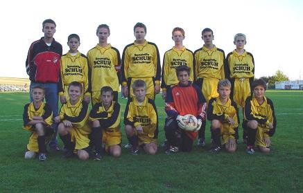 Donnerstag, 20. November 2003 Unsere U15-Mannschaft, die in der JG Südost nach dem Herbstdurchgang den 3. Tabellenplatz belegte, spielt im Frühjahr 2004 im Unteren Play-Off gegen die Teams von Götzendorf, Gumpoldskirchen, Leopoldsdorf, Maria Lanzendorf und Wienerwald. |