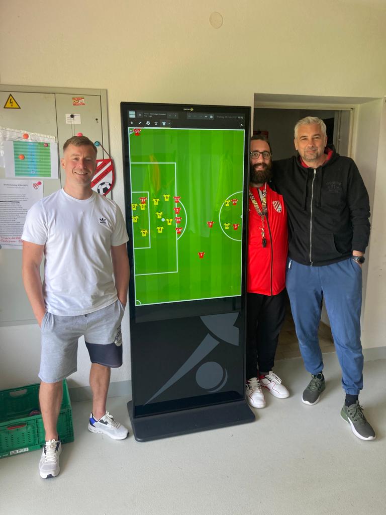 Sonntag, 14. Mai 2023 Vor Kurzem fand die Einschulung der neuen digitalen Taktiktafel auf unserer Sportanlage statt. Die Betreuer von diversen Mannschaft zeigten sich begeistert von dem neuen Tool, welches von der Firma Geomix zur Verfügung gestellt worden ist. |