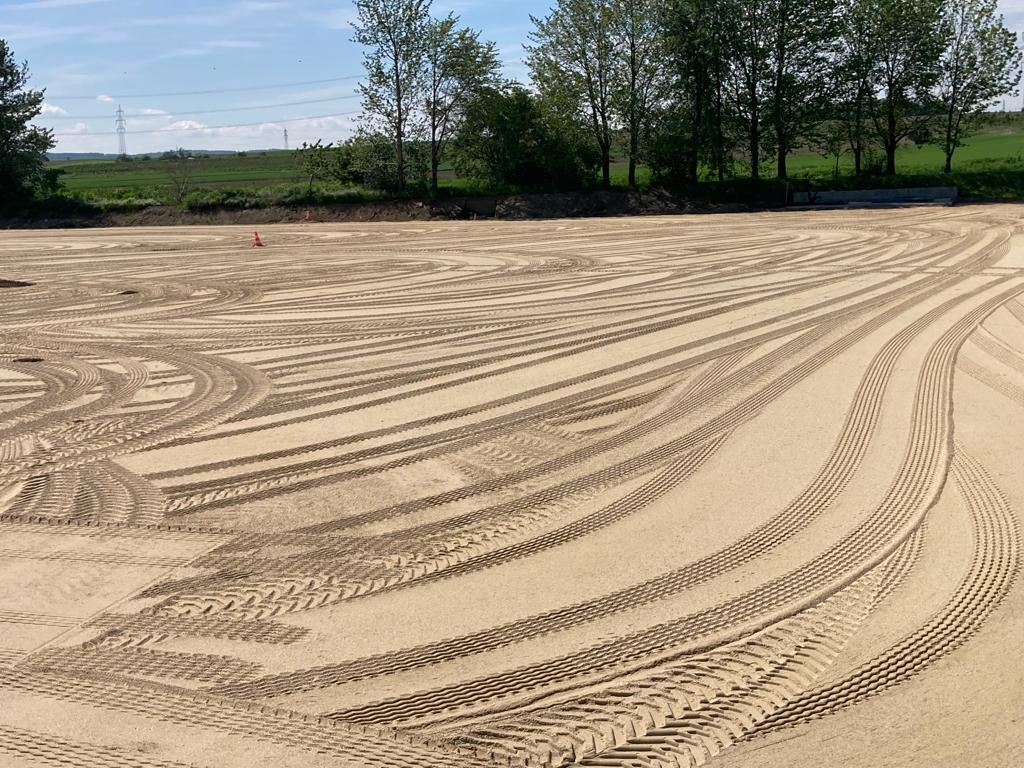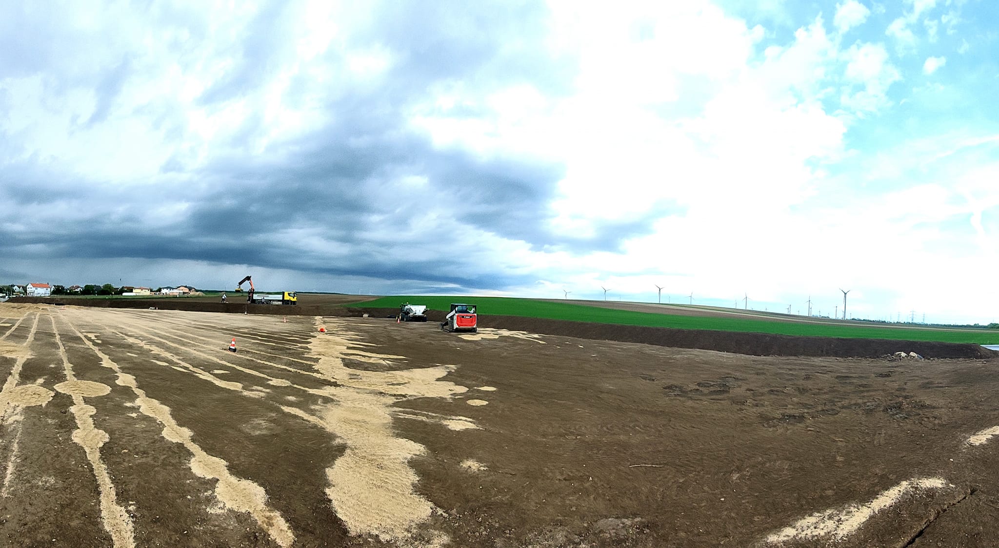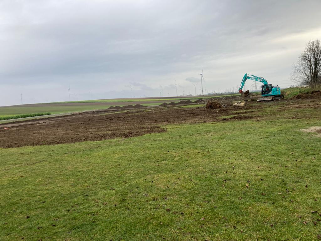 neuen Trainingsplatzes. Aktuell erfolgen gerade die Planier- und Begradigungsarbeiten
