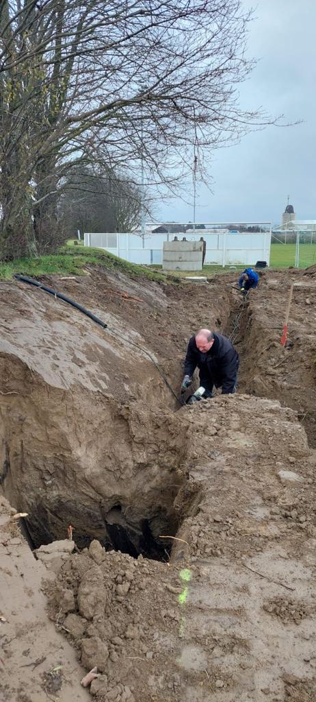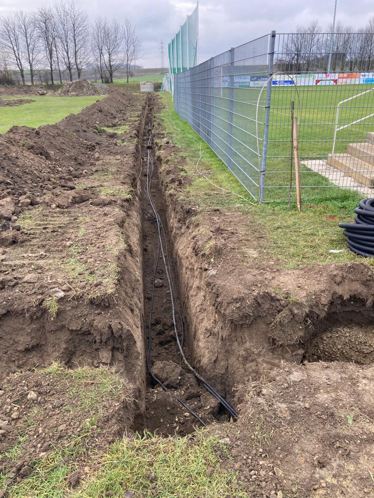 Fundamente für die 4 Flutlichtmästen gesetzt, die Spielfläche gesamt begradigt,