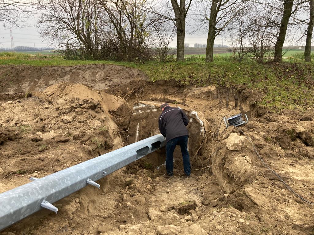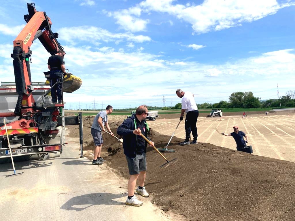 Montag, 27. März 2023 In der vergangenen Woche wurde durch Herrn Christian Edelmann (Weingut u. Heuriger Christian u. Brigitte Edelmann - Herzlichen Dank!) die zukünftige Spielfläche gefräst und aufgelockert, damit die Fa. Rasen Richter demnächst mit den Instandsetzungsarbeiten beginnen kann. Weiters konnte der Hochwasserdamm entlang der neu verlegten Straße hergestellt werden. Der SCGA bedankt sich herzlich bei Herrn Markus Fleischhacker für die Baggerarbeiten und bei den Herrn Martin, Reinhard und Stefan Paller sowie Vzbgm. Franz Schwarz, Ernst Glatzer und Josef Springer jun. für das Betonieren des Fundamentes für den zukünftigen Hochwasserschutz. |