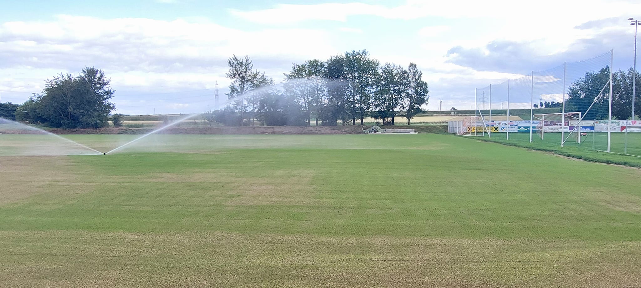 Donnerstag, 29. Juni 2023 Der zuletzt ausgesäte Rasensamen auf unserem Trainingsplatz beginnt zu keimen und so sind die ersten grünen Halme bereits deutlich sichtbar. |
