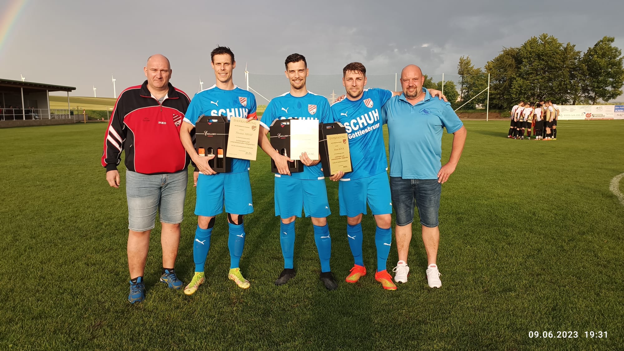 Montag, 12. Juni 2023 Vor dem letzten Heimspiel unserer Kampfmannschaft wurden vier langjährige Spieler gebührend verabschiedet. Neben Thomas Mraz, der auch zeitweilig als Spielertrainer und Co-Trainer bei uns engagiert war, wurden Mario Köck und Patrick Haider sowie Maximilian Gutschik (nicht am Bild) verabschiedet. Der SCGA bedankt sich bei den vier Spielern herzlich für ihren Einsatz bei unserem Verein und wünscht ihnen alles Gute für ihre Zukunft. |
