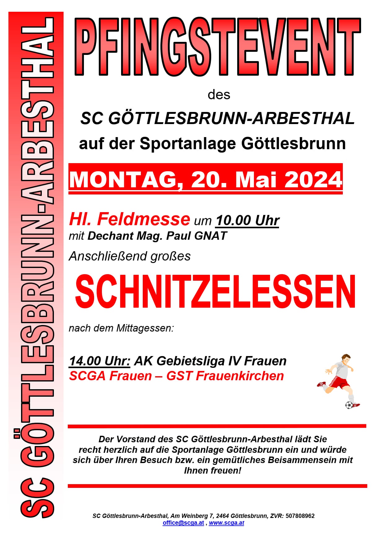Mittwoch, 29. Mai 2024 Am heutigen Abend wird die abgesagte Partie auswärts gegen Sommerein nachgetragen. Spielbeginn für die beiden kampfmannschaften ist um 20.00 Uhr und für die beiden Reserveteams um 18.00 Uhr. |