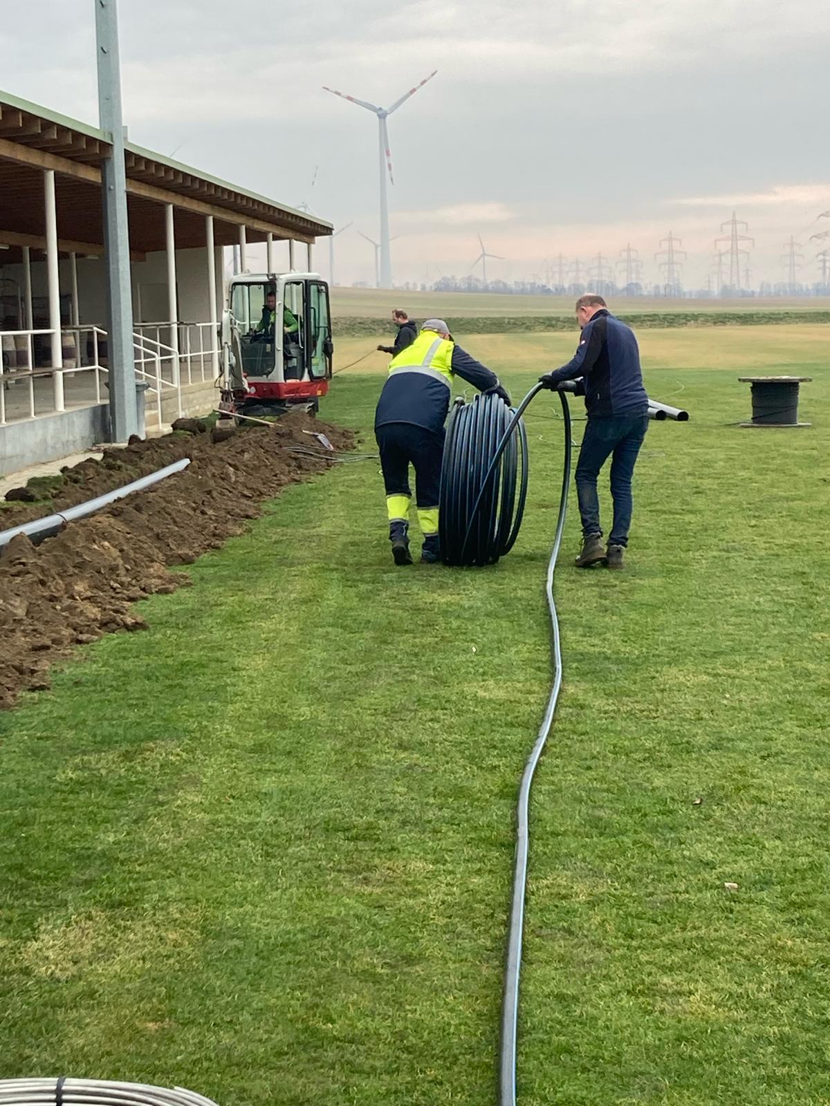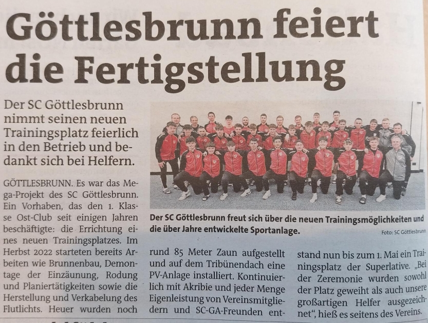 Donnerstag, 7. März 2024 ANachdem vor kurzem neue Stromleitungen für den neuen Trainingsplatz verlegt wurden (ein Dankeschön an die Herrn Markus Fleischhacker, Michael Jandl, Vzbgm. Franz Schwarz und Christian Zeller) wurde die neuen Tore am Trainingsplatz montiert. Ebenso wurde die Spielfeldmarkierung angebracht, womit der Platz für die Abnahme des NÖ Fussballverbandes fertig ist. |