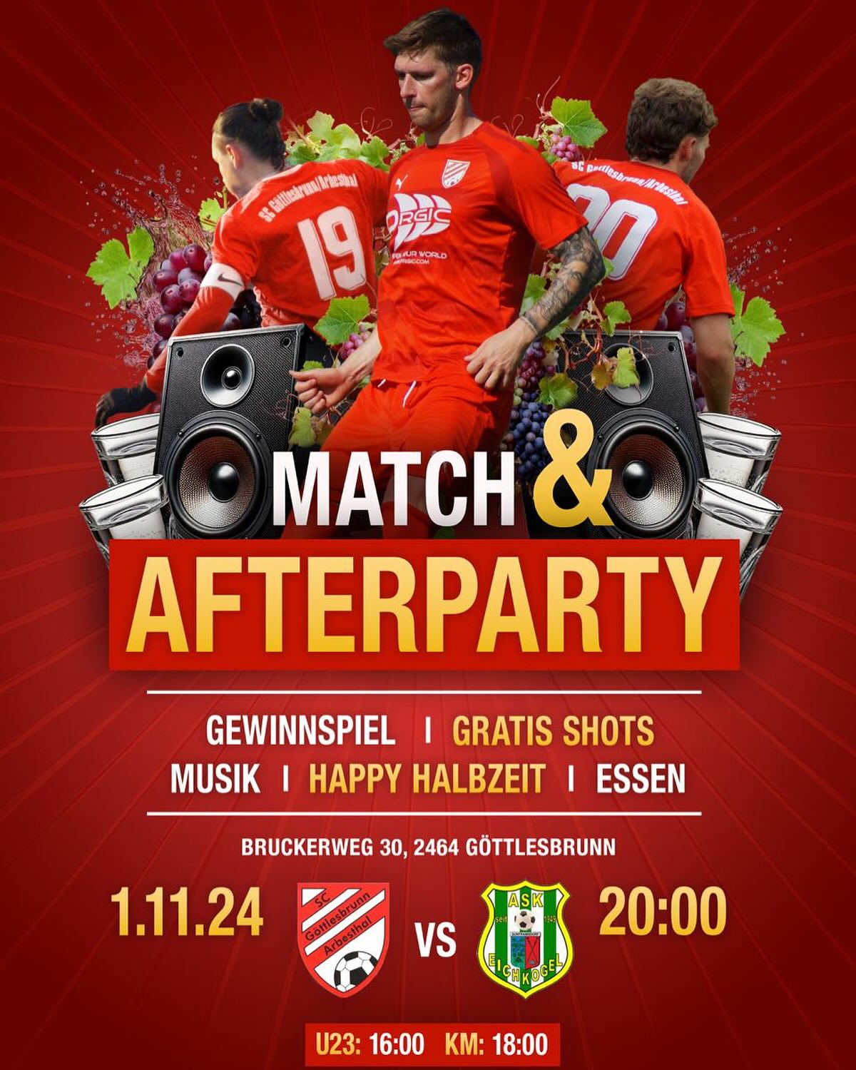 und Marius Pimpel freuen. Nutzen Sie die Möglichkeit und probieren Sie einen edlen Tropfen. Wie gewohnt finden Sie den Weinstand auf unserer Veranstaltungstribüne! Zusätzlich gibt es nach dem Spiel (ab ca. 20.00 Uhr) eine Match&Afterpartie. Bereits davor gibt es ein Gewinnspiel sowie eine Happy Halbzeit.