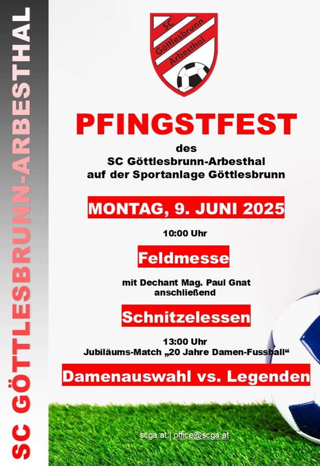 Samstag, 31. Mai 2025 Am heutigen späteren Nachmittag fand das Derby aller Derbys in unserer näheren Umgebung statt. Unsere beiden Herrenmannschaften empfingen unsere (mittlerweile) Freunde aus dem benachbarten Höflein. Natürlich ist nach wie vor viel Spannung und Würze in dieser Begegnung. Auf die Zuschauer, die sich diesen Leckerbissen am späteren Nachmittag vor Ort nicht entgehen lassen wollten, wartete ein breitgefächertes Rahmenprogramm mit Meisterehrung unserer Reservemannschaft nach Abpfiff um ca. 20.00 Uhr und anschließender Verlosung der Riesentombola. Hier warteten tolle Preise wie z.B. eine Playstation 5, ein Handy Samsung S25 oder eine Suunto Vertical Uhr. Auch kulinarisch gab es einiges für unsere Gäste. Neben der Weinbar - diesmal ausgerichtet von der Familie 20er Schulz - wartete eine Longdrink-Bar und die Gäste konnten sich beim Champions-League-Finale die Zeit vertreiben. Das Spiel begann mit einer Schweigeminute für den kürzlich verstorbenen Hans Artner, der u.a. auch Obmann des SCGA von 1975-1980 war und dem Verein auch in schwierigen Zeiten immer die Treue gehalten hat. Die Partie selbst wurde klar von unserer Mannschaft