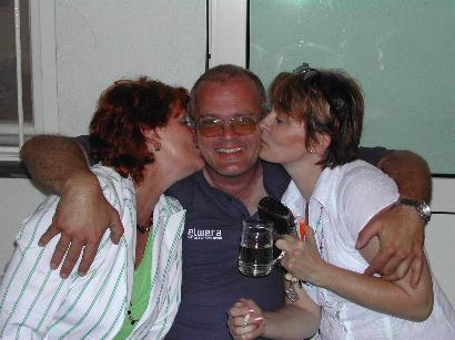 | Natürlich war unser Obmann "harte Leber" Reinhard Paller von feschen "Hasen" (Gitti Zowa aus Haslau und Waltraud Jardschin aus Bruck an der Leitha) nur so umzingelt und somit "Hahn im Korb"! |