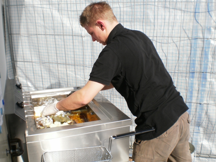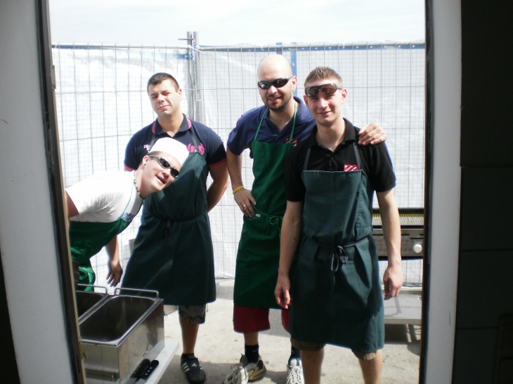 In aller Früh (ab 07.30 Uhr) ging es bereits an herrichten - allen voran ans "Riesen-Schnitzel"-Einpanieren! |