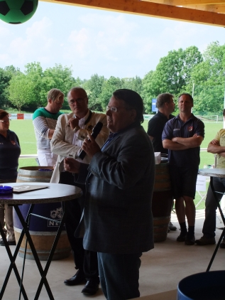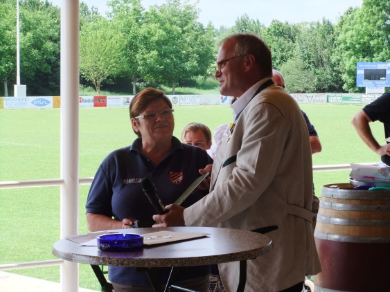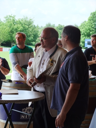 ![]() Übergabe der Ehrenurkunde und des Fotobuches anlässlich des Tribünenbaus an "Bauleiter" Peter Schenzel |