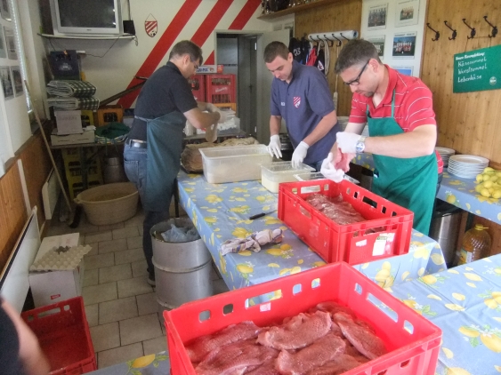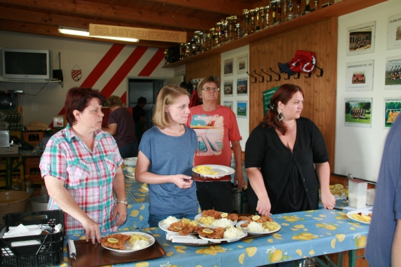 ![]() die "noch" müden "Frittier- und Backmeister" (Hirmann H., Jandl M., Messermayer J., Miletich A., Paller M., Schütz Ph. - teilweise nicht am Foto) um 09.30 Uhr |