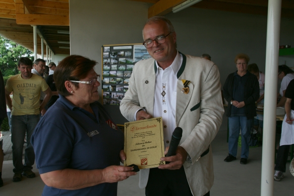 Kassierin Johann Halter bei der Verleihung des goldenen Ehrenzeichens des Sportvereines